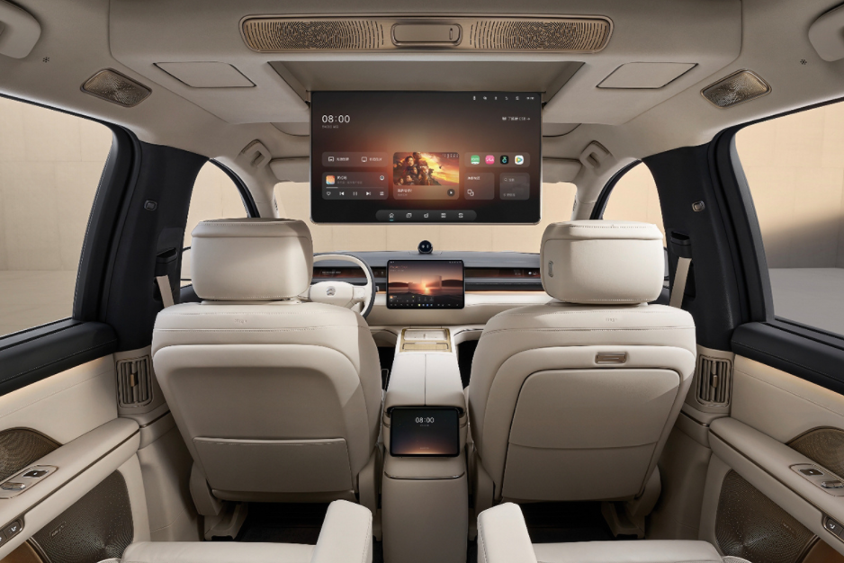 上左右一共三颗激光雷达,外加一颗4D成像雷达,硬件配置拉满了。储物空间也巨大,前备厢230升,后备厢547升。另外还有一个超大的下沉空间。坐到车内,你会不会一瞬间觉得上错车了?
